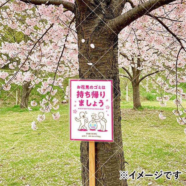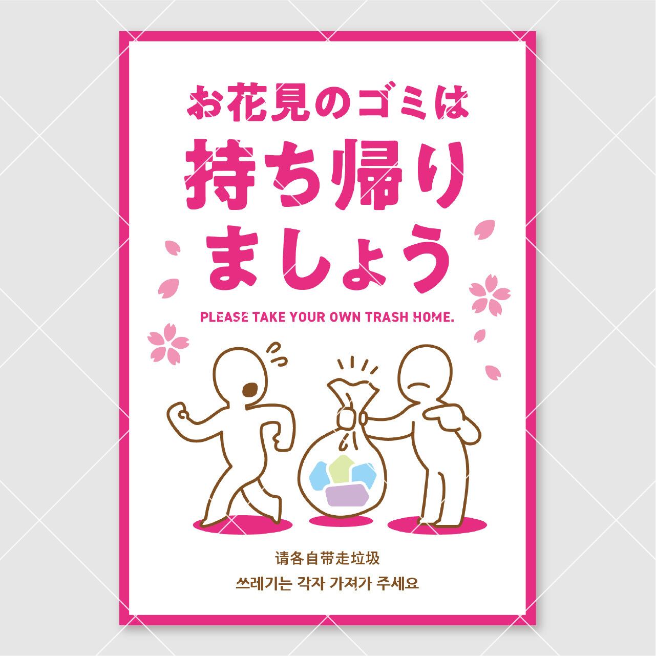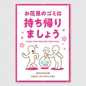 お花見の楽しい雰囲気をそのままに、「自分で出したゴミは、持ち帰ってほしい」そんな気持ちを、角が立たない形で伝えられるよう工夫しました。見た人の意識に残る、でも押し付けがましくない一枚です。